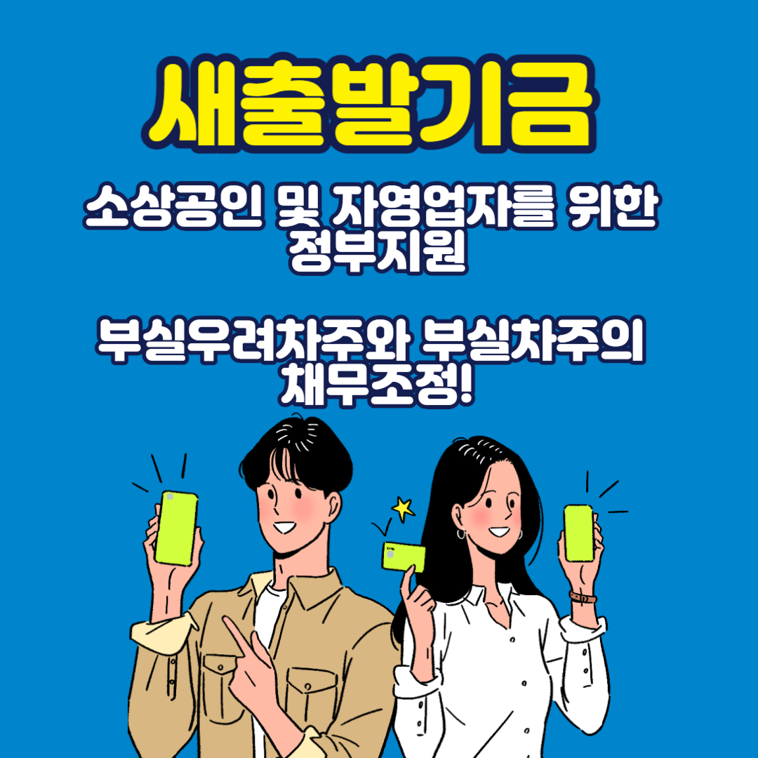 정부에서는 코로나19로 인해 피해를 입은 자영업자 및 소상공인에게 경제적 도움을 주고자 자영업자 지원금인 소상공인 새출발기금을 지원합니다. 소상공인 새출발 지원금은 부실우려차주 또는 부실차주의 채무를 조정해 주는 프로그램으로 몇 가지 조건에 해당되시는 분들은 바로 혜택을 받으실 수 있습니다.